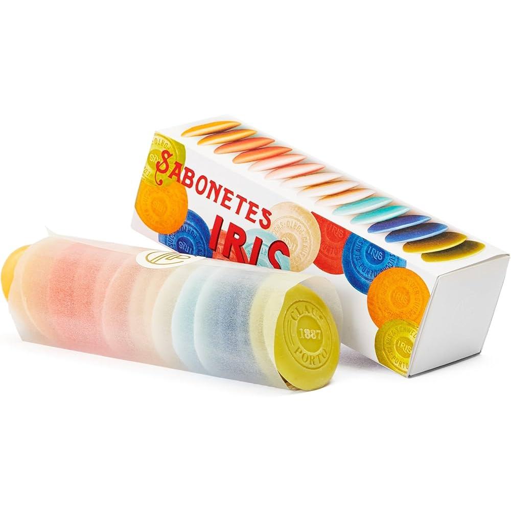 The Claus Porto Iris Guest Soap Box features fifteen beautifully wrapped 10 g soaps inspired by the timeless elegance of iris florals and the heritage craftsmanship of Portugal’s oldest soapmakers. Each miniature bar is triple milled for exceptional density and longevity, producing a velvety, luxurious lather that leaves skin soft, smooth and lightly scented.